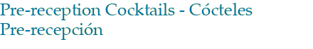 Inmediátamente luego de la boda católica, síganos a una celebración pre-recepción con música, canapés (aperitivos) y bebidas. Durante este evento, que será en la terraza al aire libre Villas, se llevará a cabo una sesión de fotografías.
